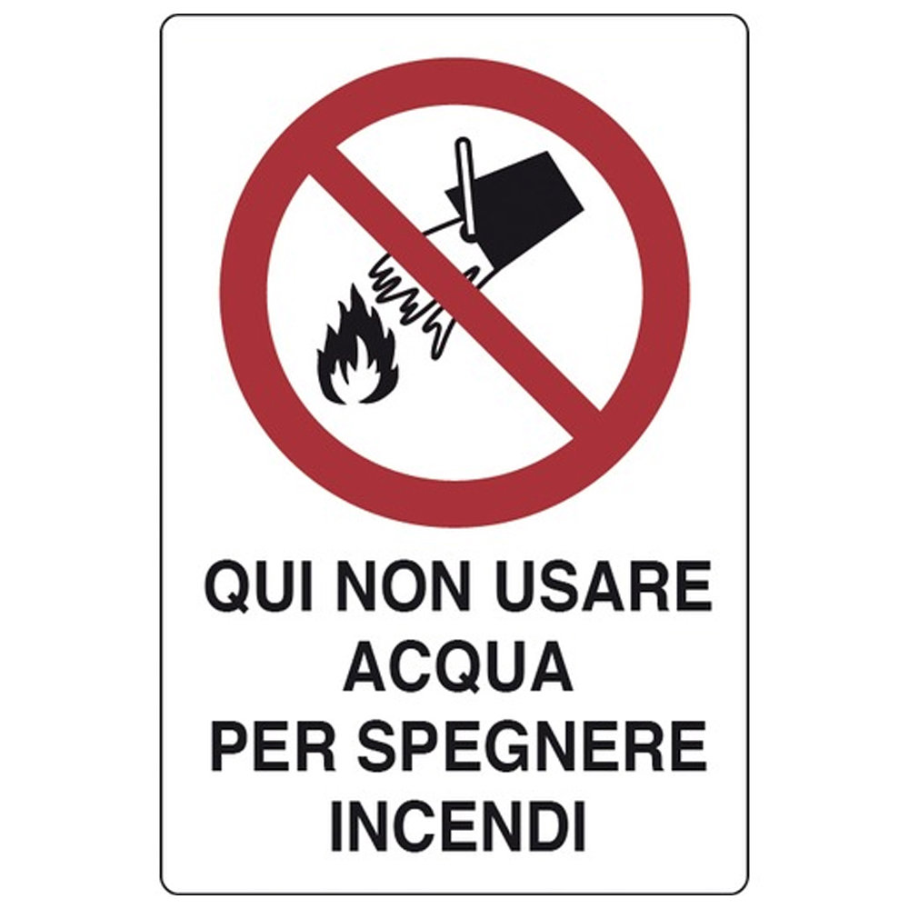 CARTELLO DI SICUREZZA NON USARE ACQUA IN CASO DI INCENDIO 20X30 CM